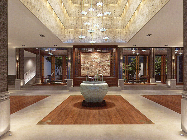 普陀山庄坐落于佛教名胜普陀山,优美的环境和浓郁的佛教文化成为休闲度假、调整身心的福地。因此在建酒店的整体风格上引入了源自于佛教的禅宗文化。但在表现上又要注意有别于宗教场合的肃穆、拘谨,使之成为游客能充分放松的场所。本方案注重在细节上表现出禅文化的宁静、悠远、祥和、以香、花、灯、水为设计主题来贯穿体现普陀山庄的文化特色。通过香炉、灯具、造型、流水等全方位的感官体验,以期住客在这里能得到精神上的放松、更接近空灵、悠远、无争的佛学境界。